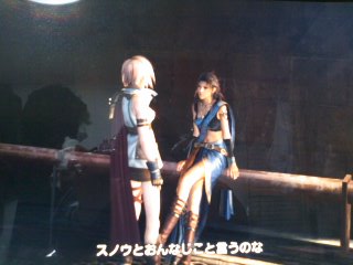 ホープに襲い掛かられて、でも助けちゃって、ごめん、俺ひどいこと言ったって平謝りするスノウも、スノウらしい一本気な素直なところが良かったし、結局復讐なんかできずにライトニングからもらったナイフをしまうホープも良かった。そのとき、そのナイフがセラからもらったライトニングの大事な物だって、ホープにわかる、そこのちょっとした小さいところが良くてねー。後で、「ぼくもライトさんを守る」、って彼の気持ちに響いてくるイベントだし。